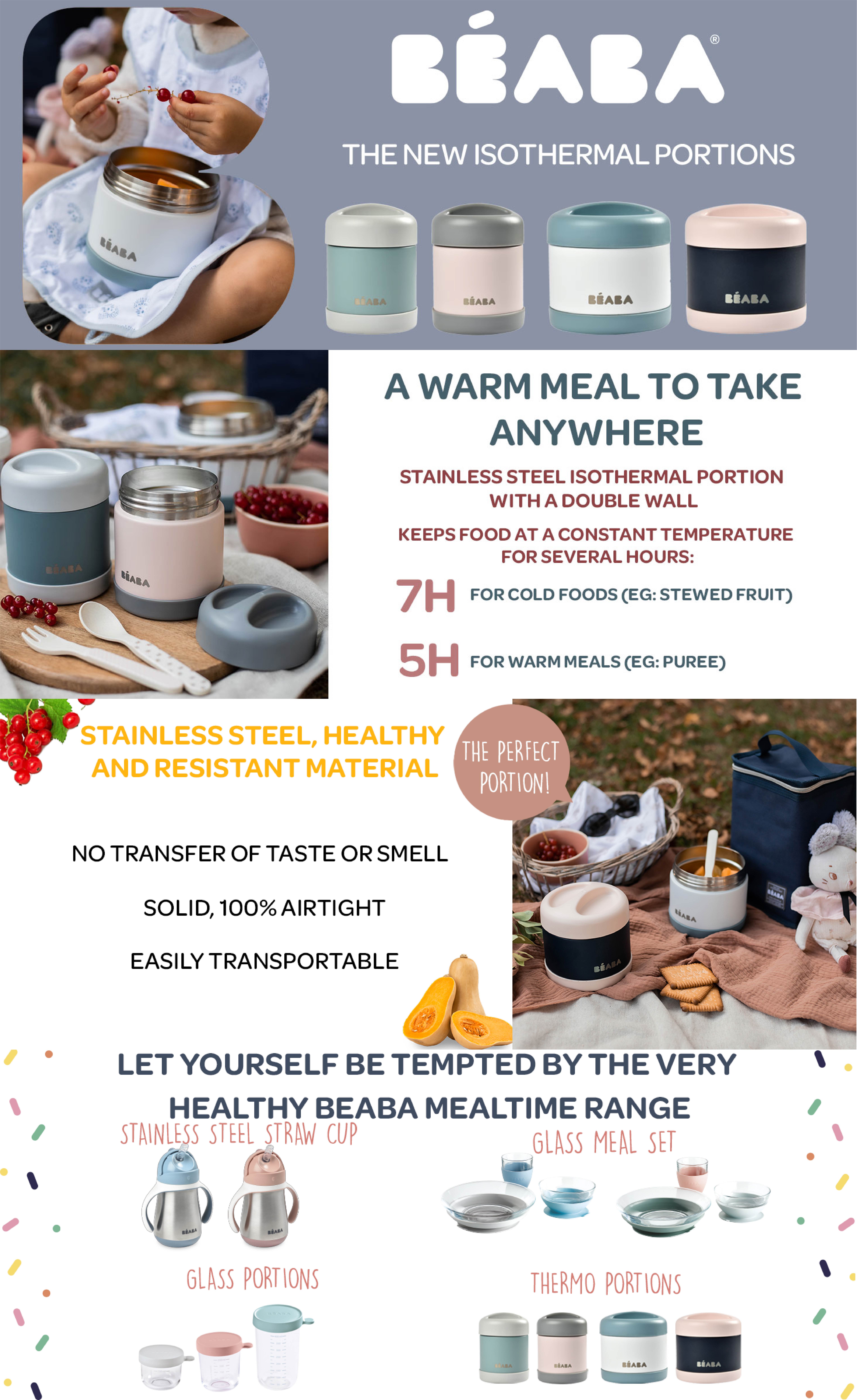- Keeps meals for babies and older children at the right temperature.
