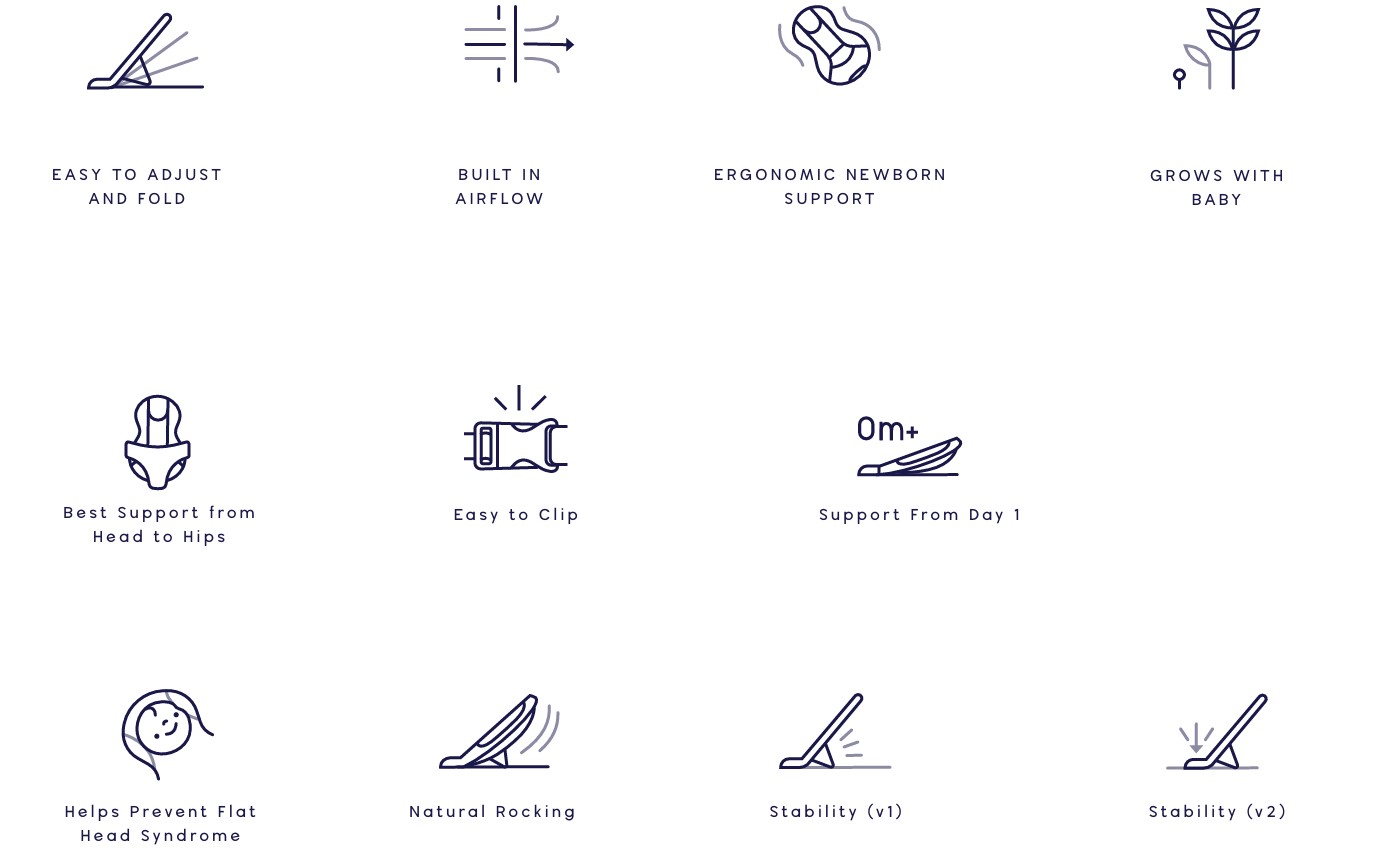 Newborn Lounger - The innovative newborn insert was designed with guidance from a pediatric orthopedist and offers support from head to hips to keep baby in the most ergonomically friendly position. Our baby bouncer seat offers comfort from day one and beyond.
